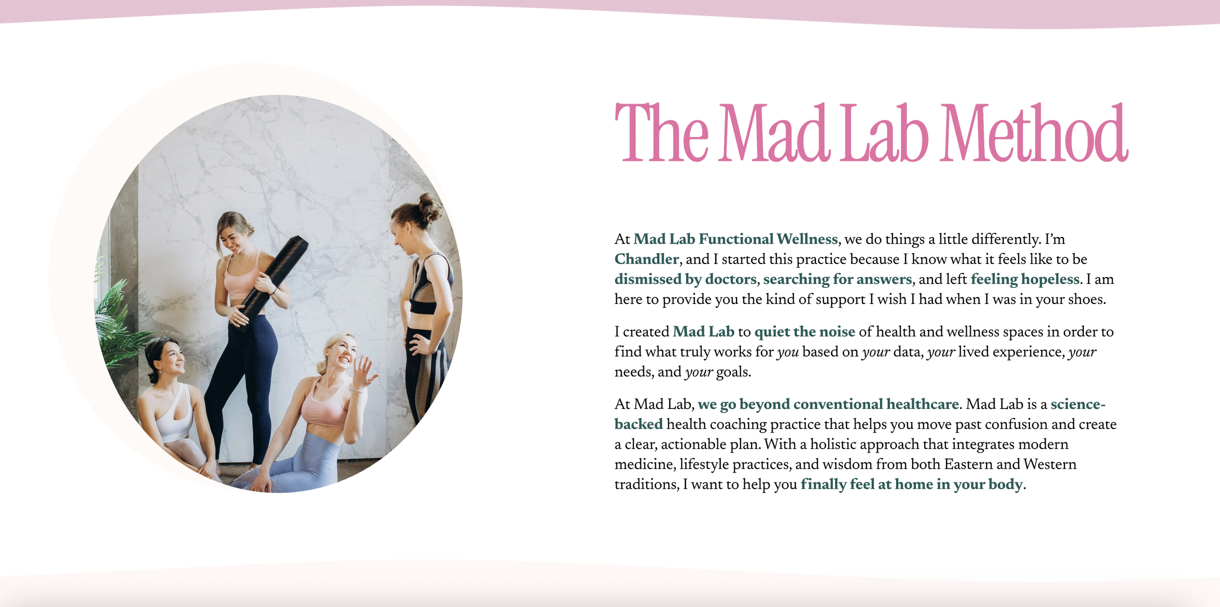 After workshopping the exact brand language and feel, I wrote all the copy you see on her website.